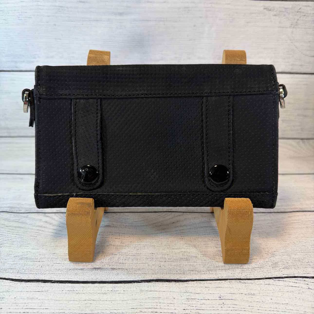 Black Leather Belt Bag with Removable Black & White Shoulder Strap. Excellent Condition. Designer Brand. Has Dust Cover Bag. Stainless Steel Hardware.