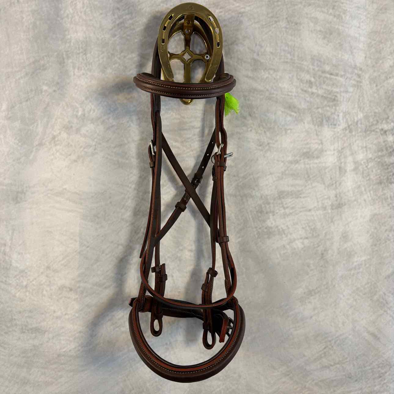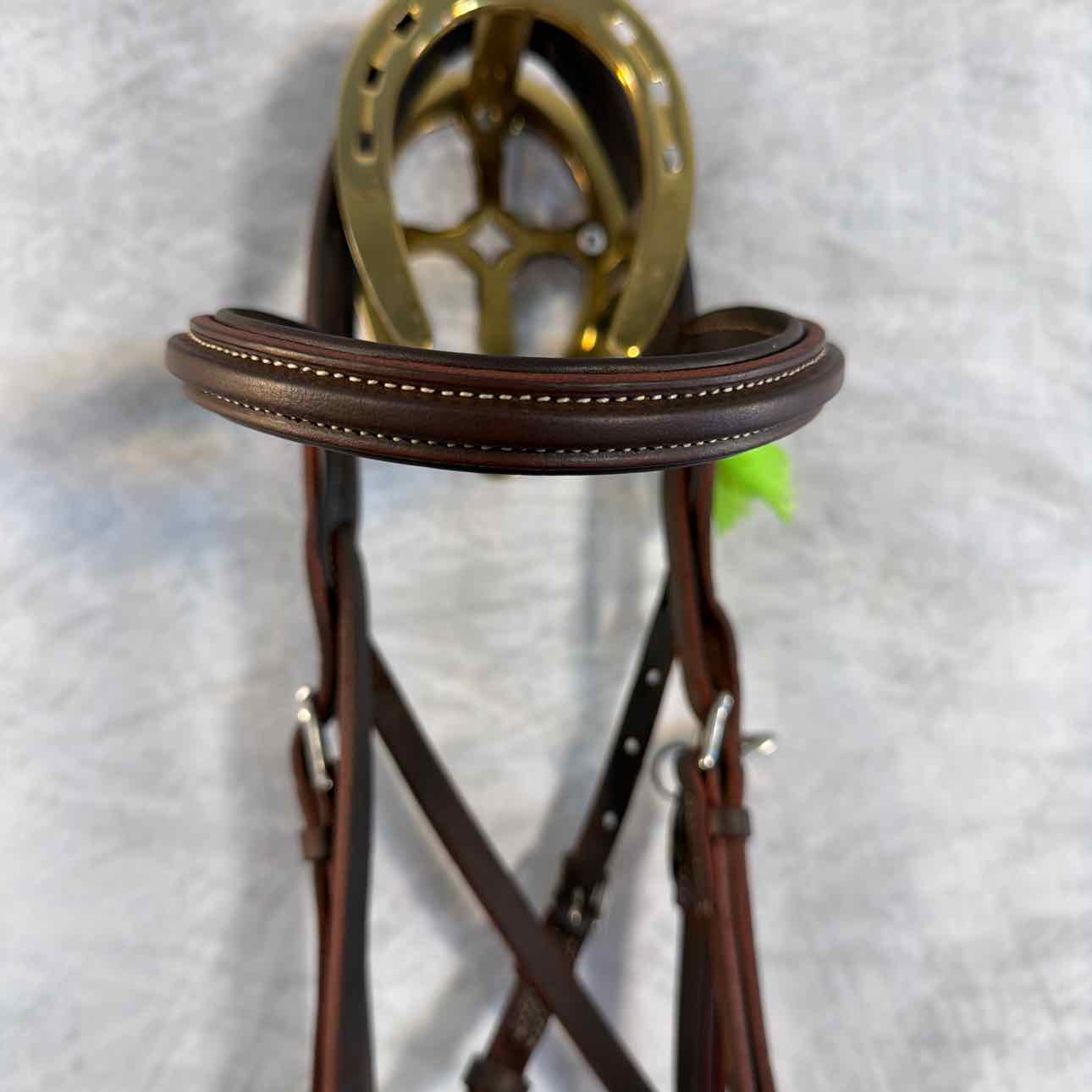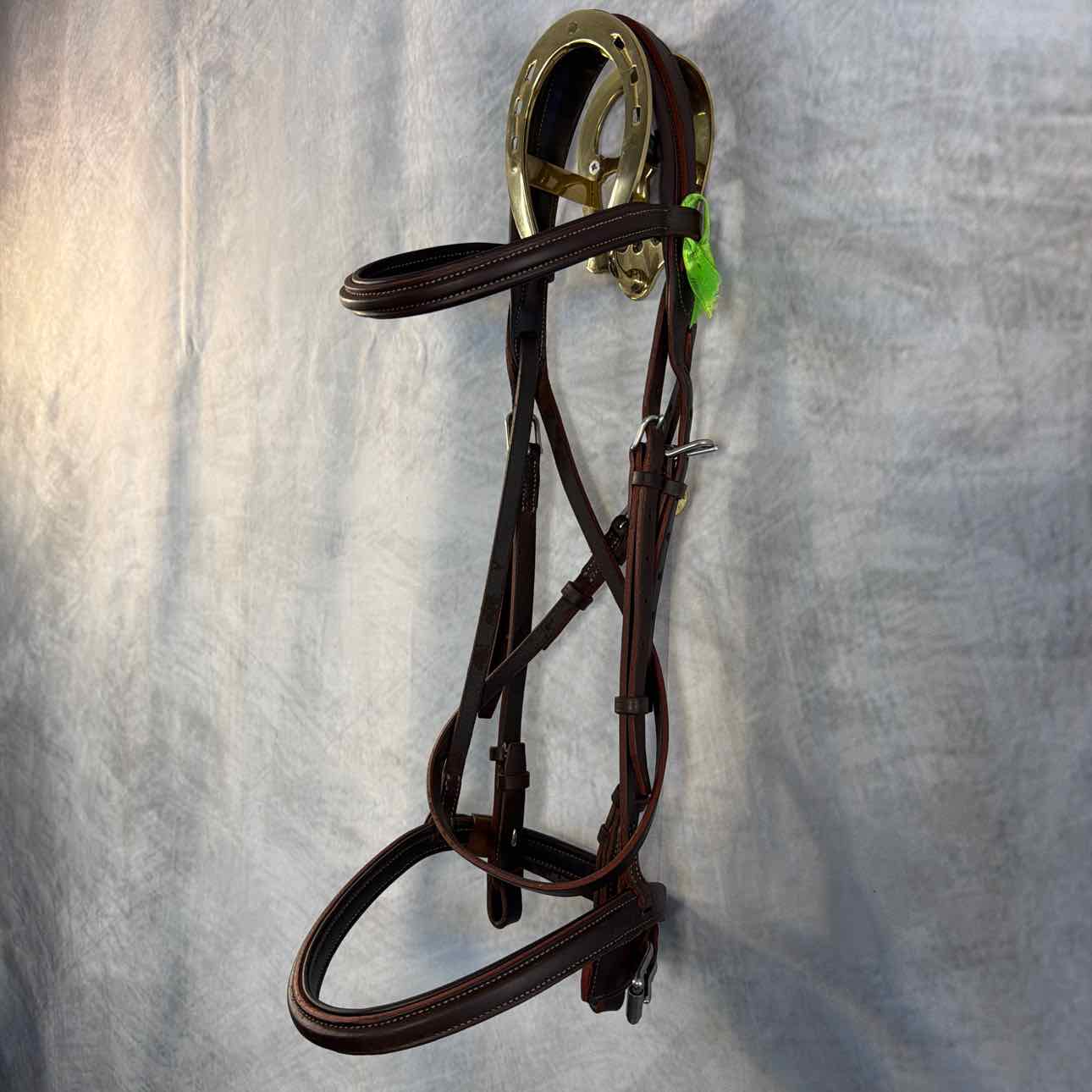 Plain Raised Bridle. Used, but Good Condition. No Reins. Padded Crown. Bit Hanger has Hook Stud Ends. Stainless Steel Hardware.