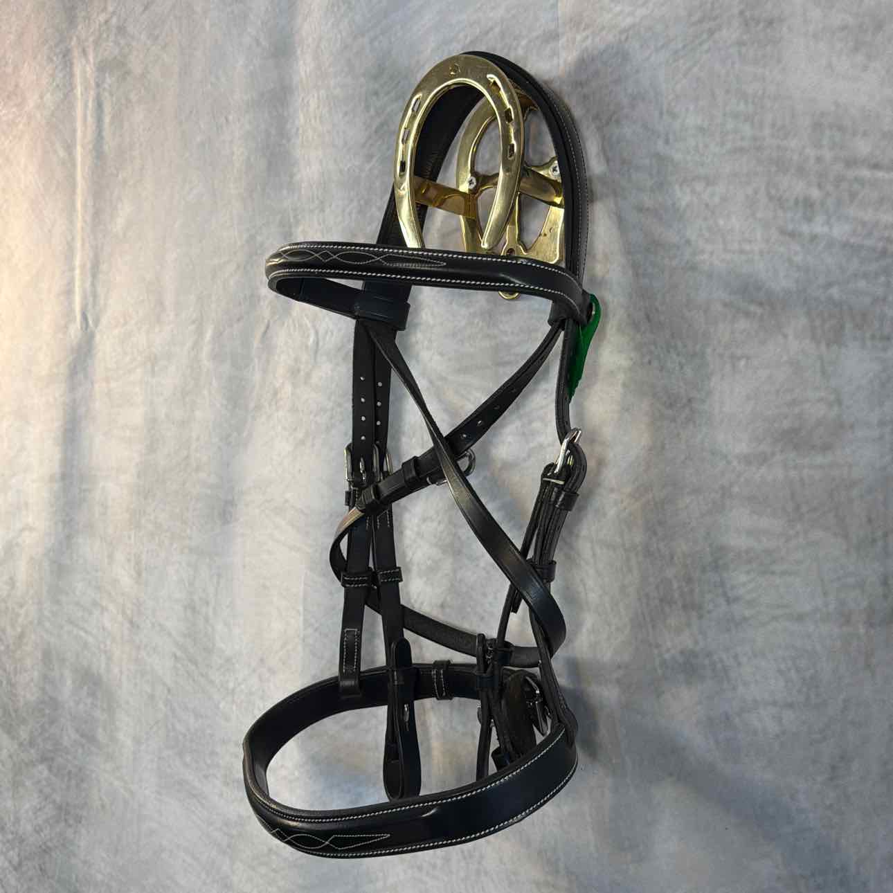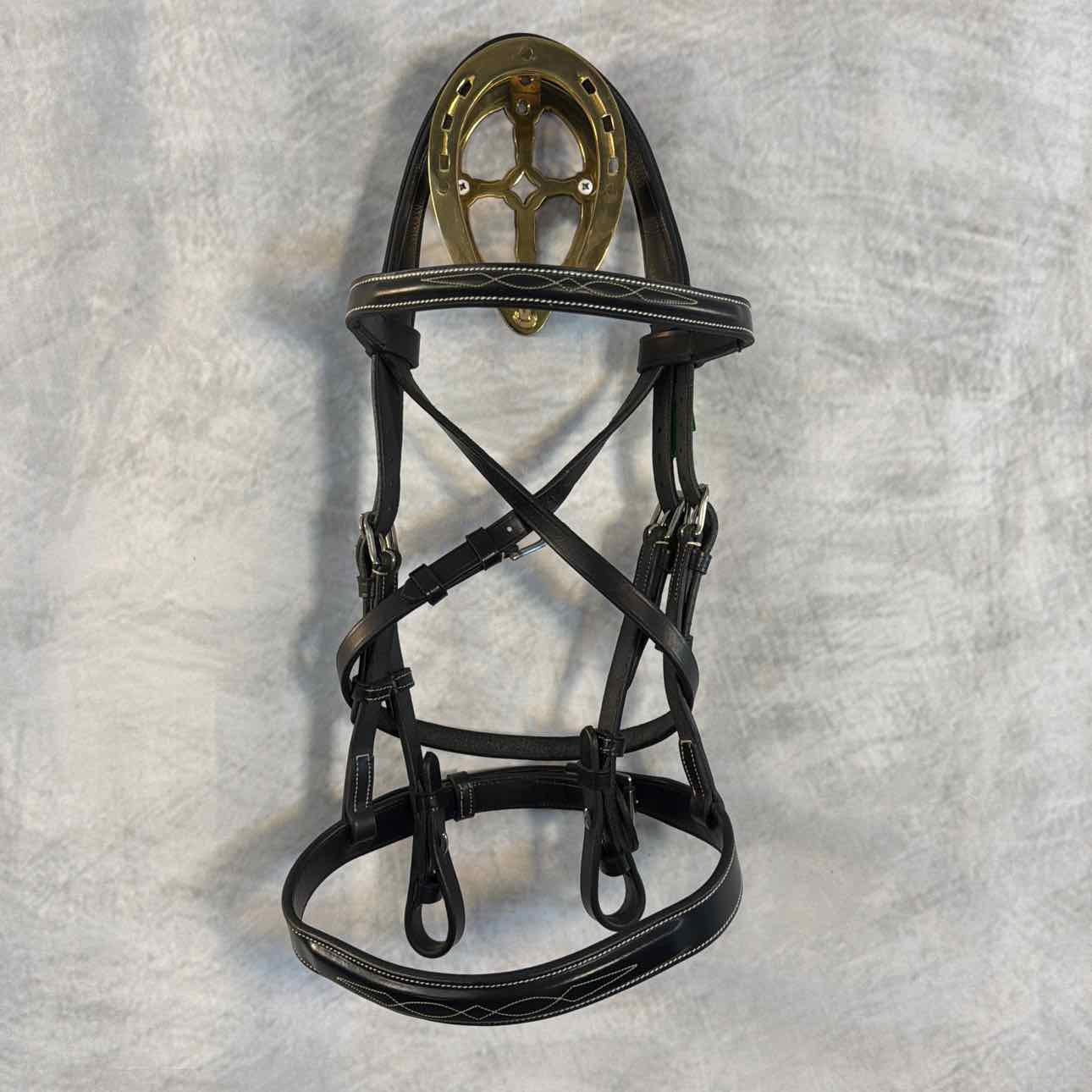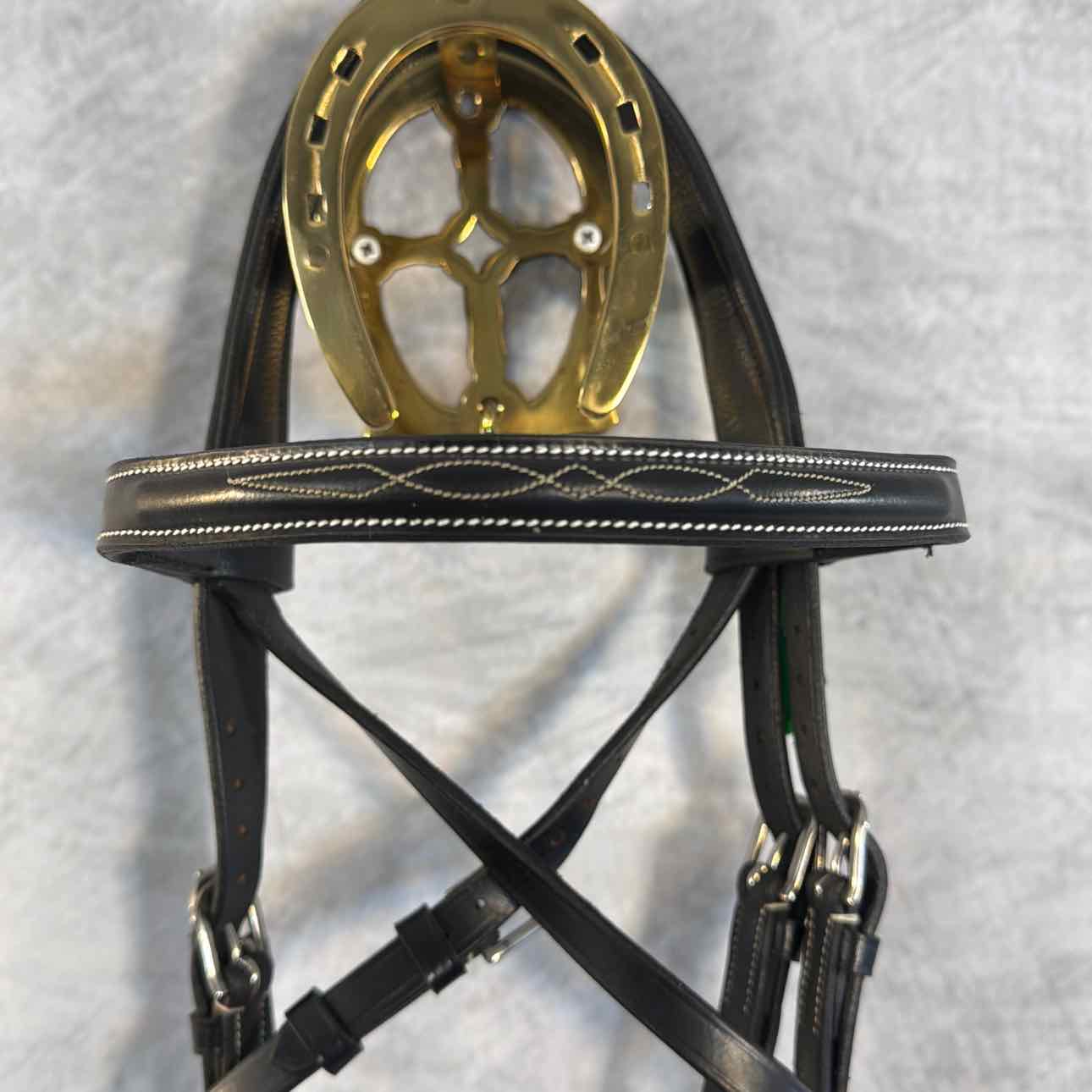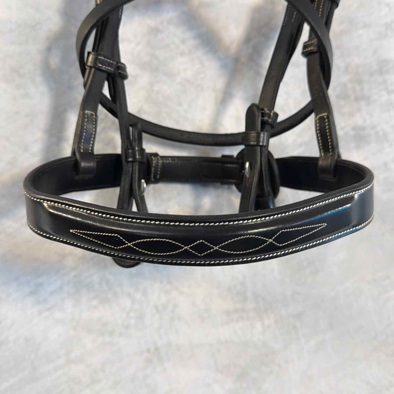 NEW Fancy Stitched Hunter Bridle. US Collection. Cavesson. No Reins. Padded Crown. Stainless Steel Hardware. Bit Hanger has Hook Stud Ends. COB.