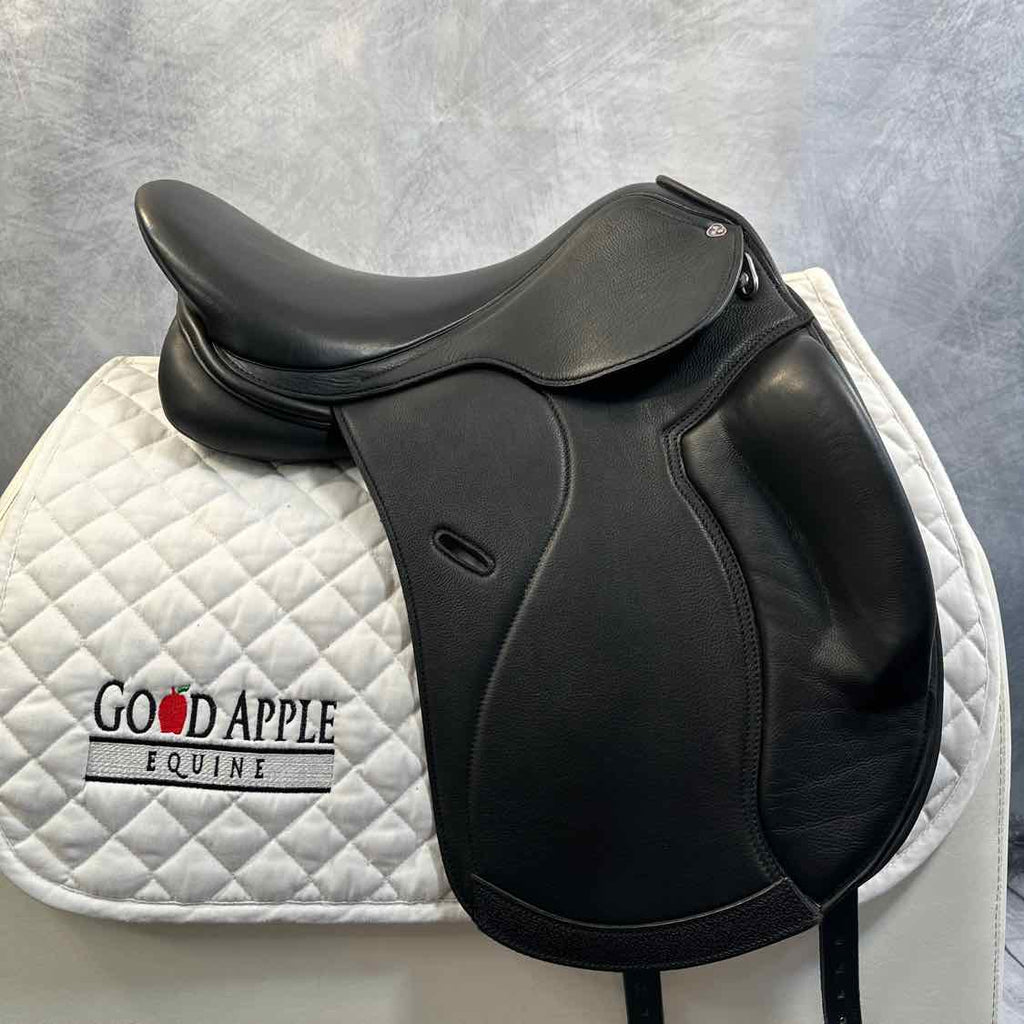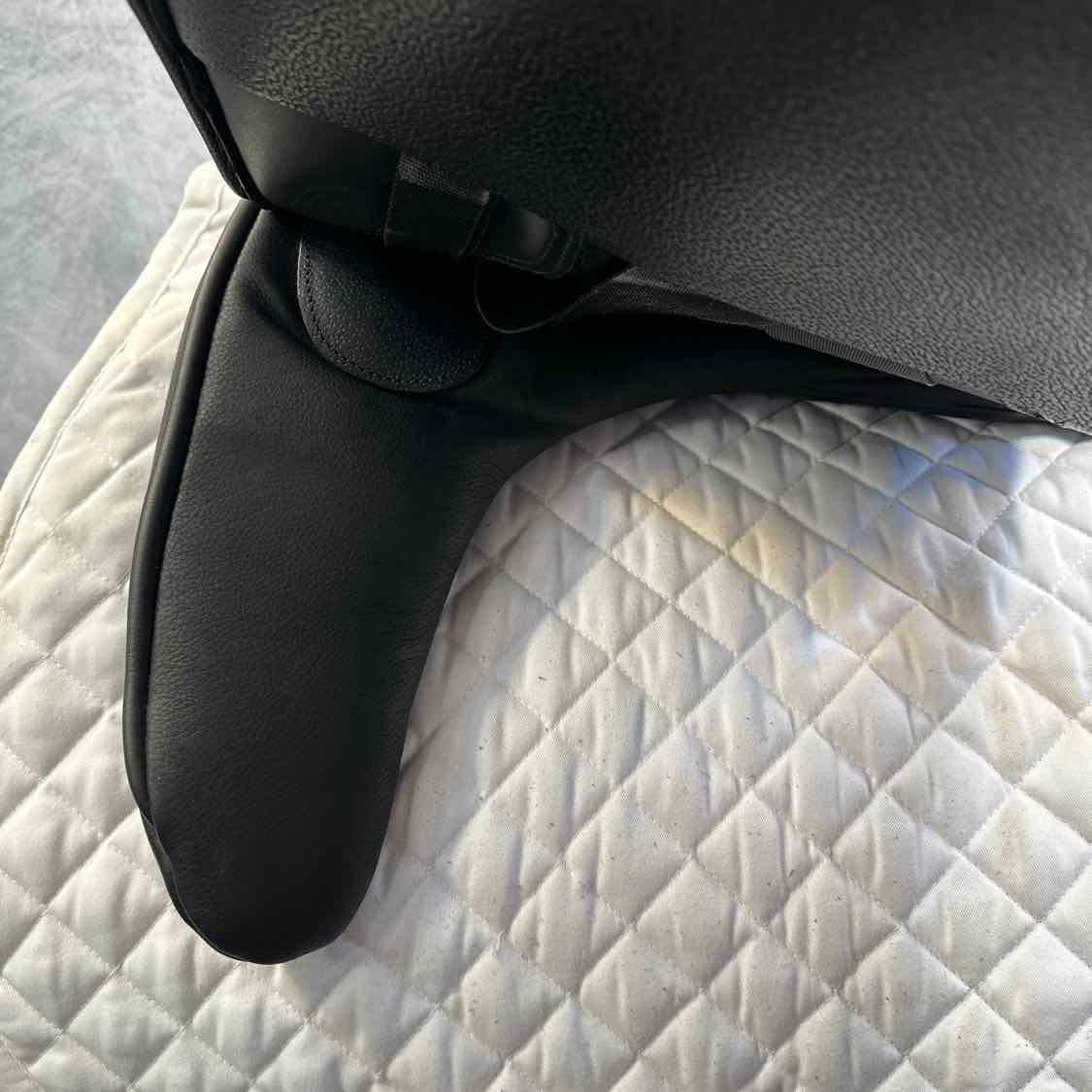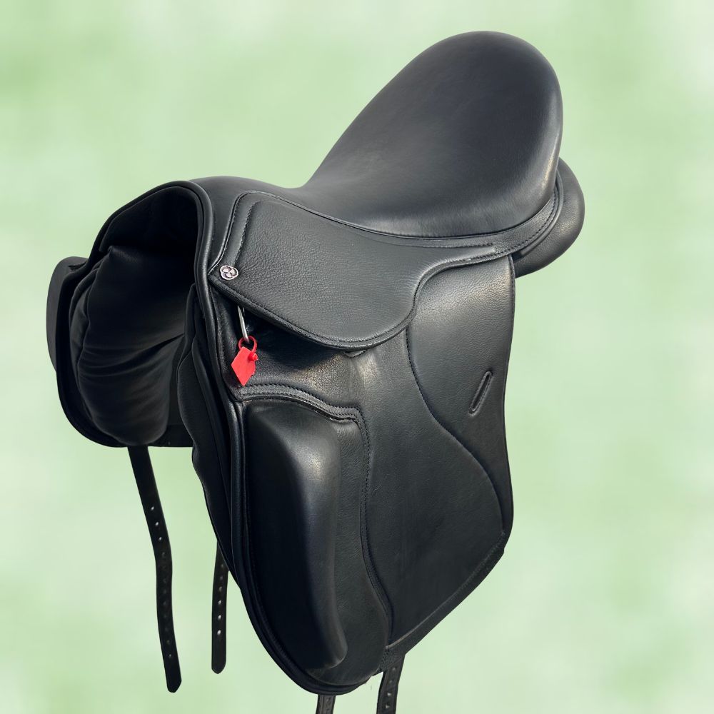 Monoflap Dressage Saddle with Adjustable Tree. Currently has Green Gullet - Narrow/Medium. Like New Condition. (Has Cover)