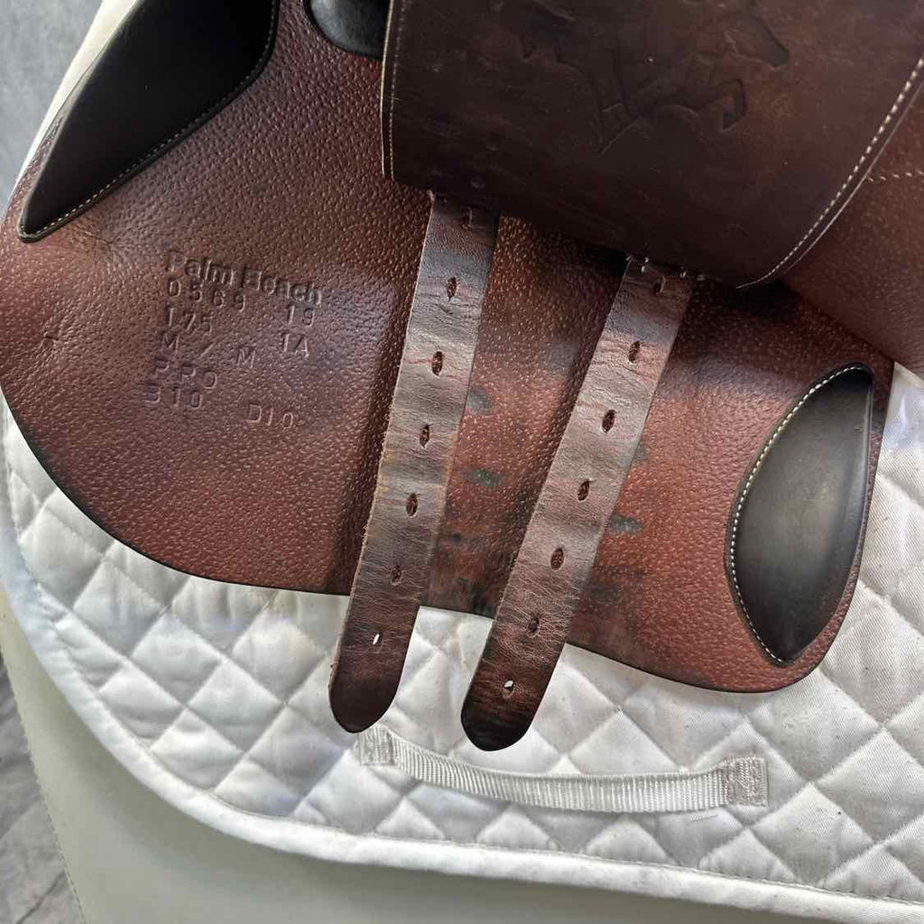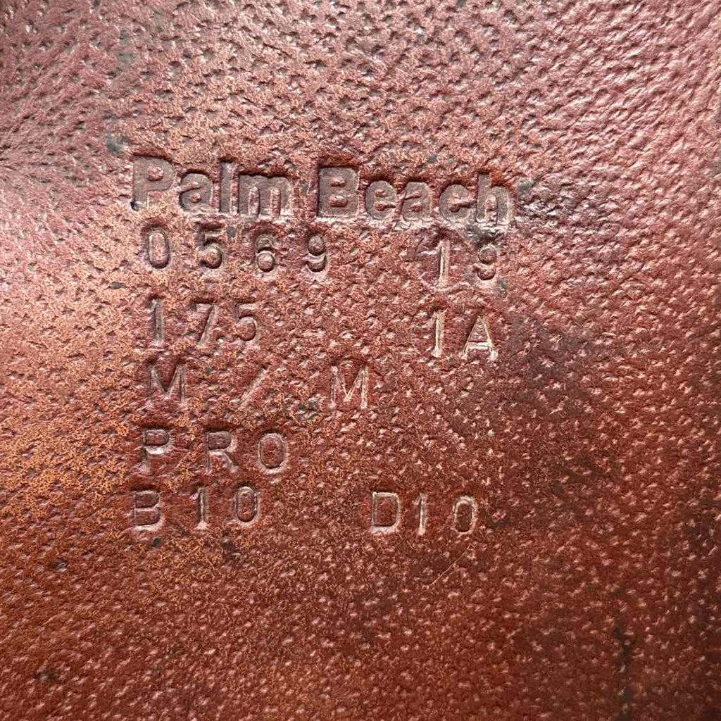 Palm Beach Close Contact Saddle. M/MW (measures 5"). Flap 12.5". 1A. 2019. Has Cover. Very Good Condition. Small Scratch on Front Knee Roll (see detail photo). Full Buffalo Leather.