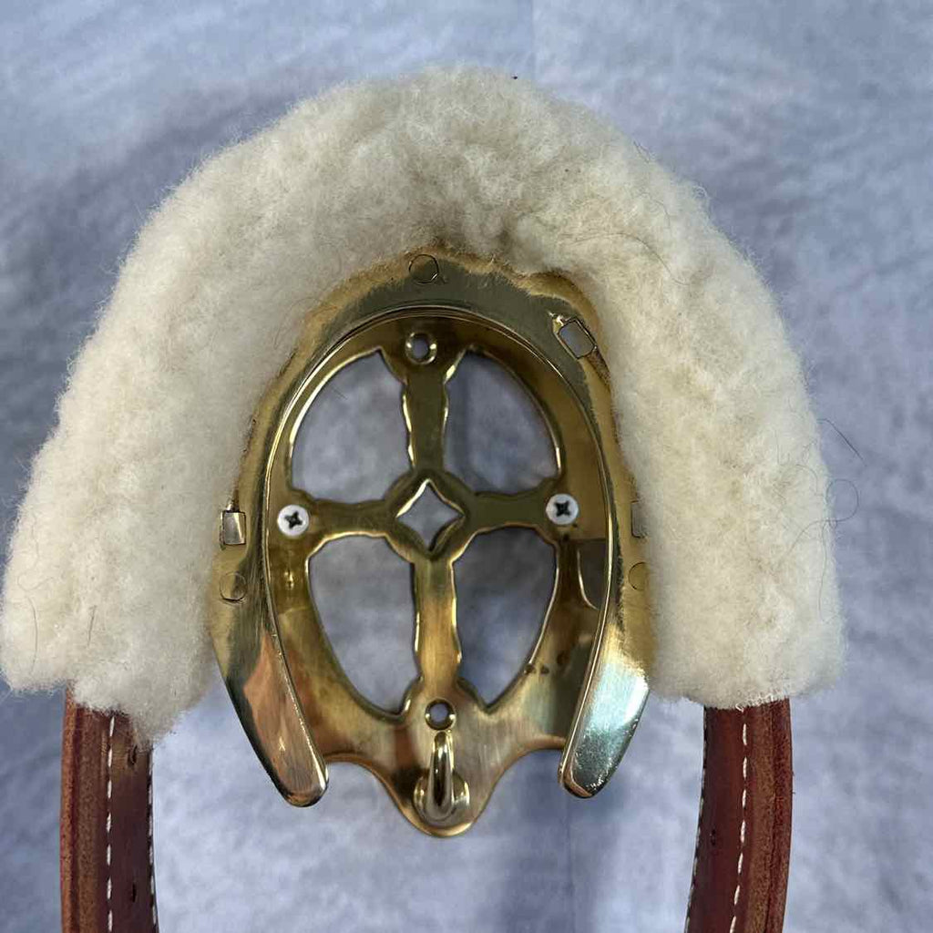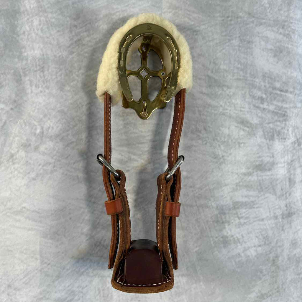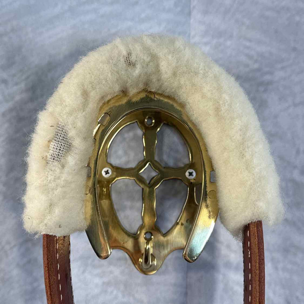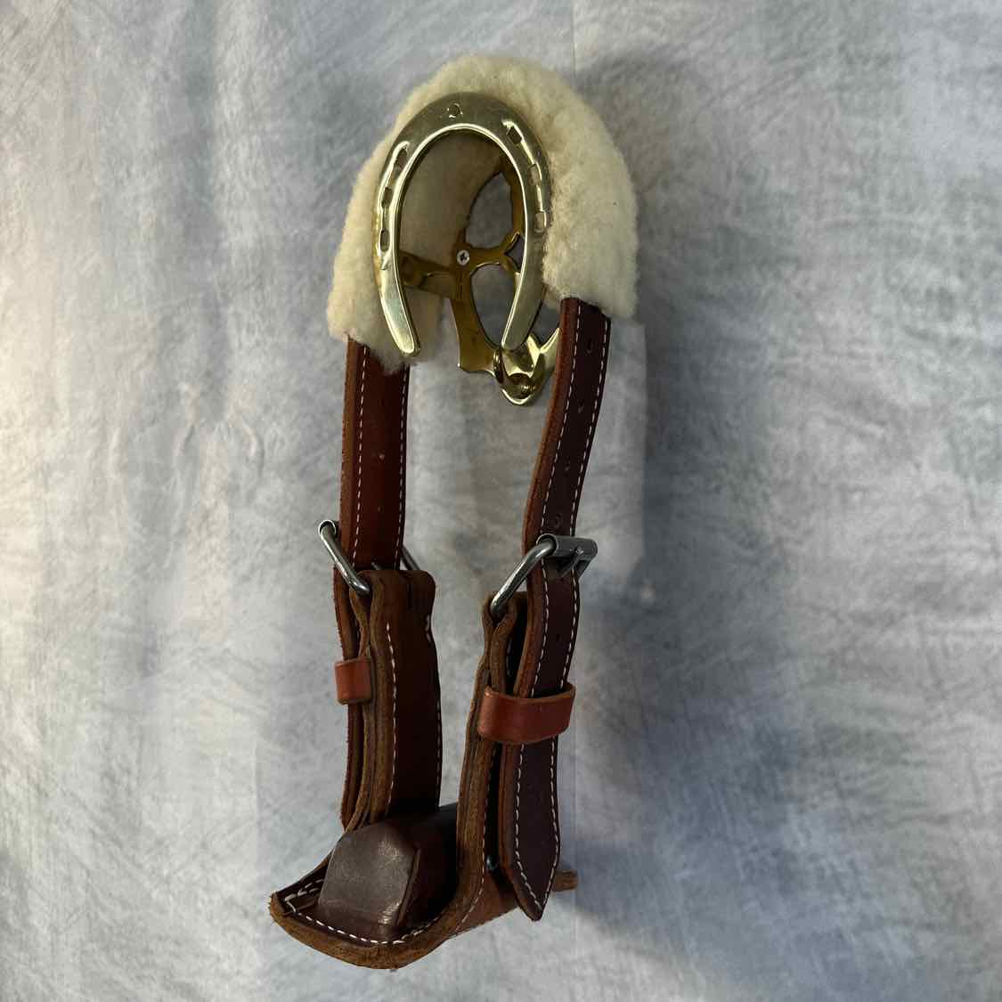 Schutz Brother The Dare Cribbing Collar with Fleece Poll Cover. Leather in Excellent Condition. Fleece Cover has some Wear on One Side - See Detail Photo.