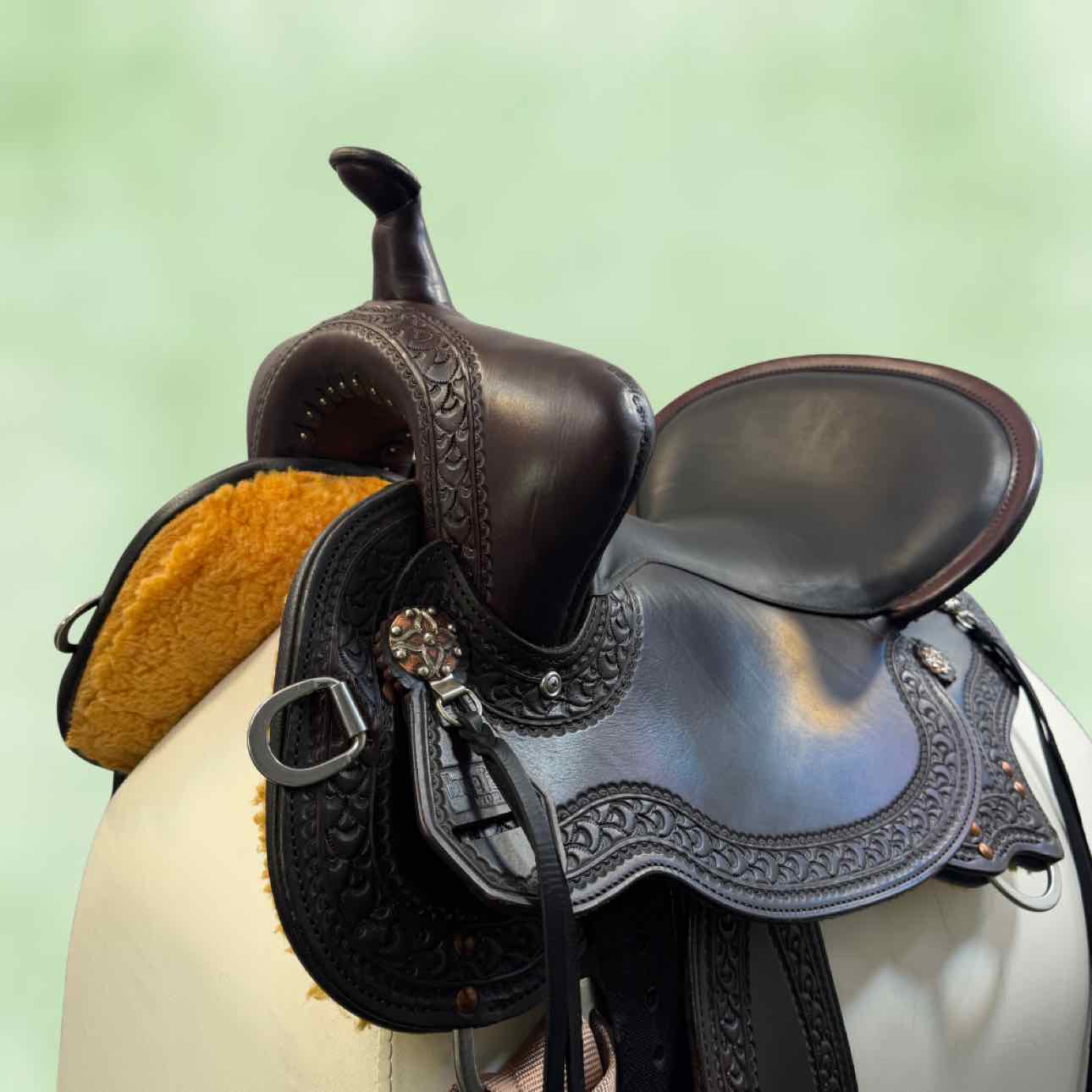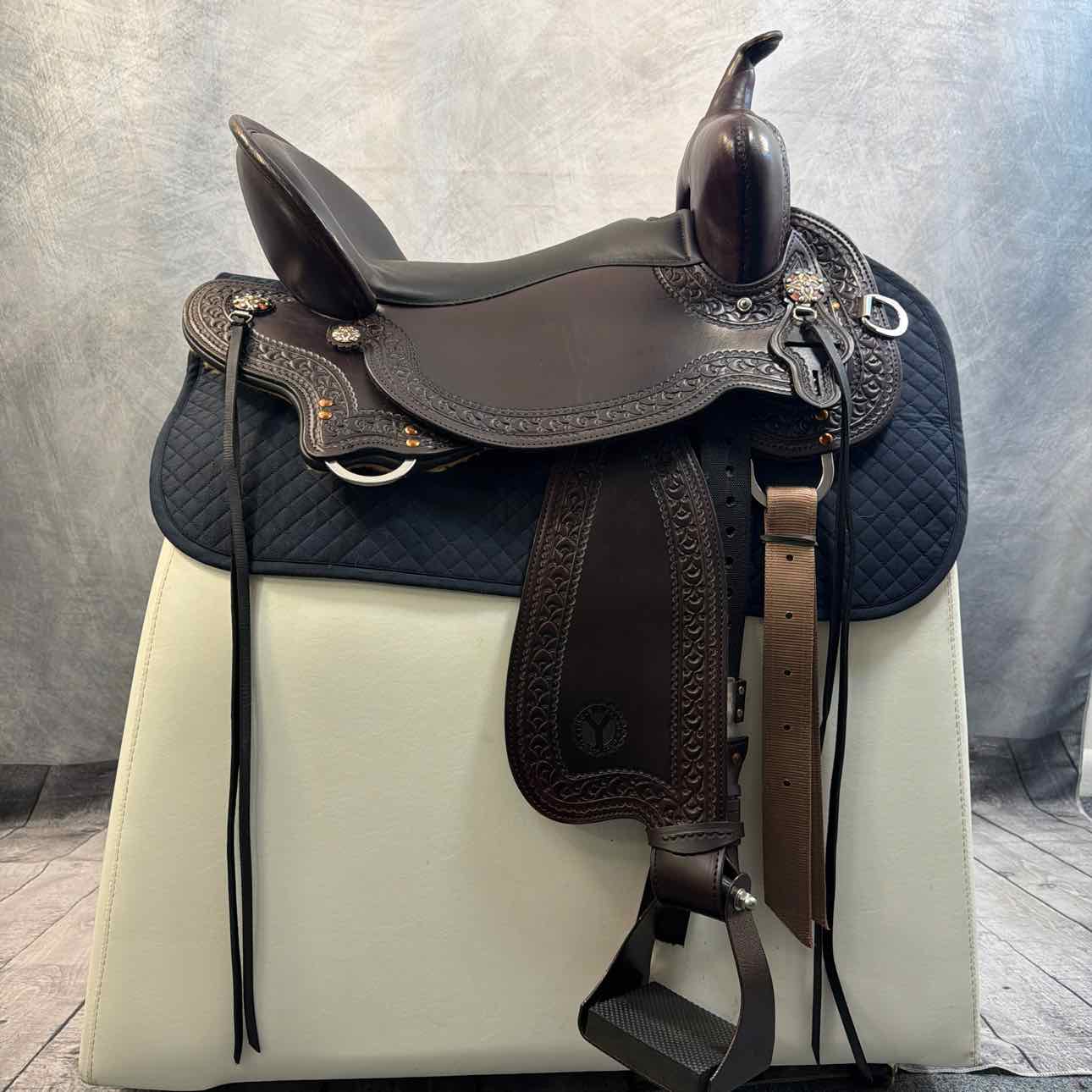 Circle Y - Horse Tack World Square Swell Wide Flex Trail Saddle. 2022. Flex2. Spine Relief Sklirt. New Nylon Latigo & Off Billet. Wide Endurance Stirrups - Pre-Turned.