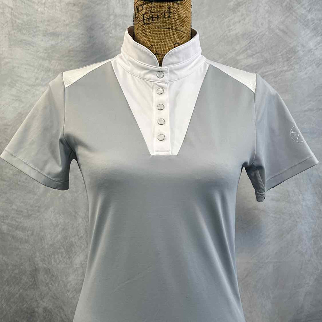 Devon Short Sleeve Show Shirt. Grey and White. Excellent Condition. Designer Brand.