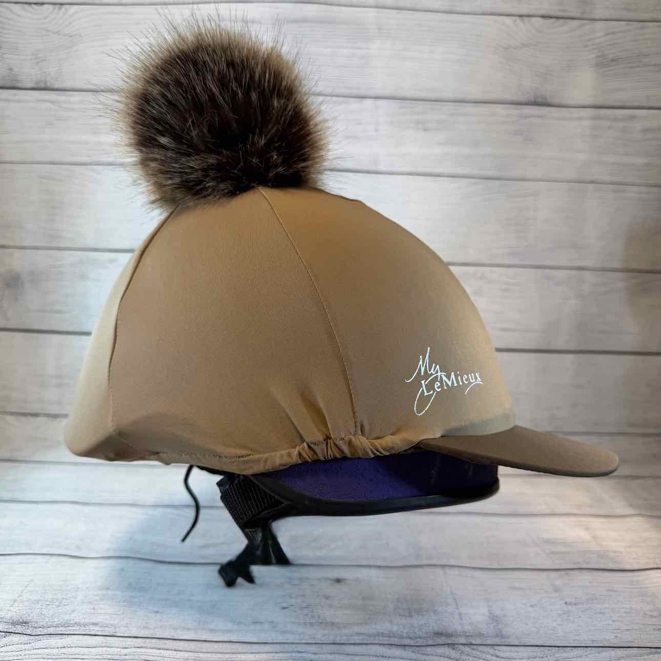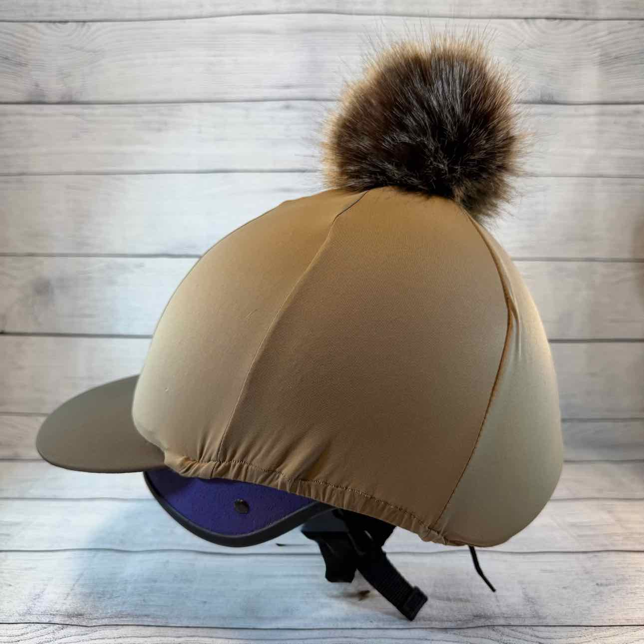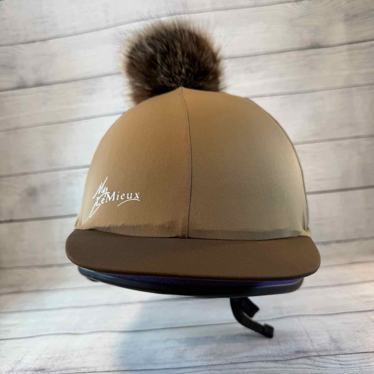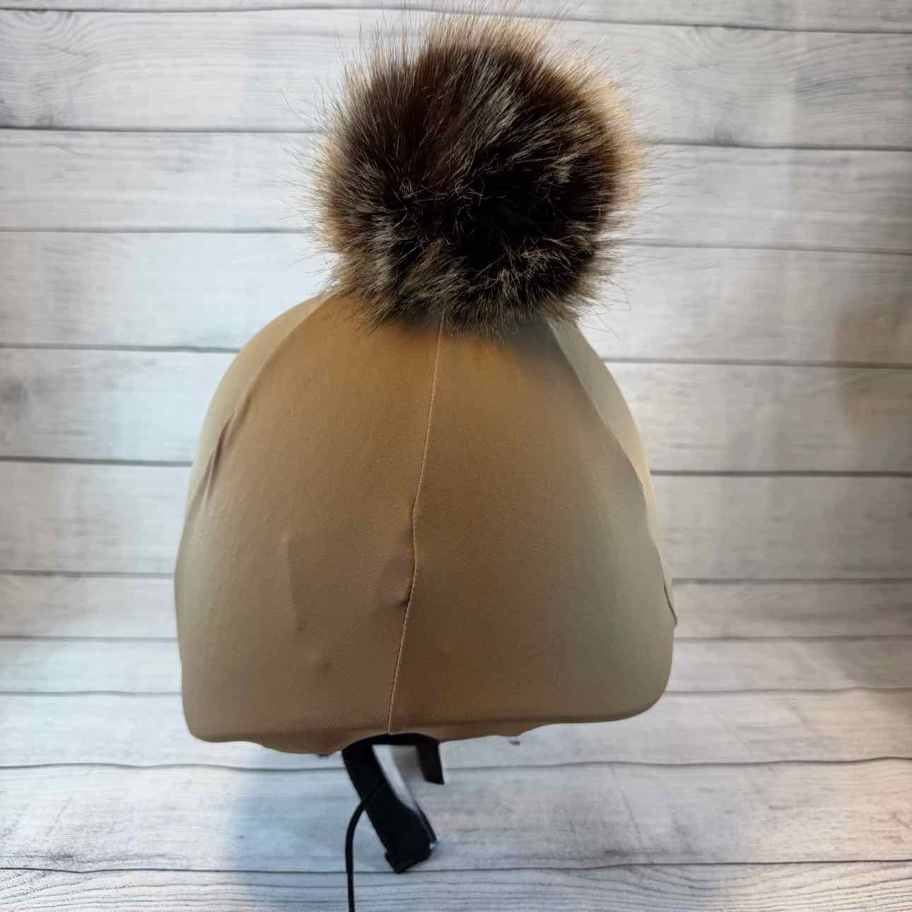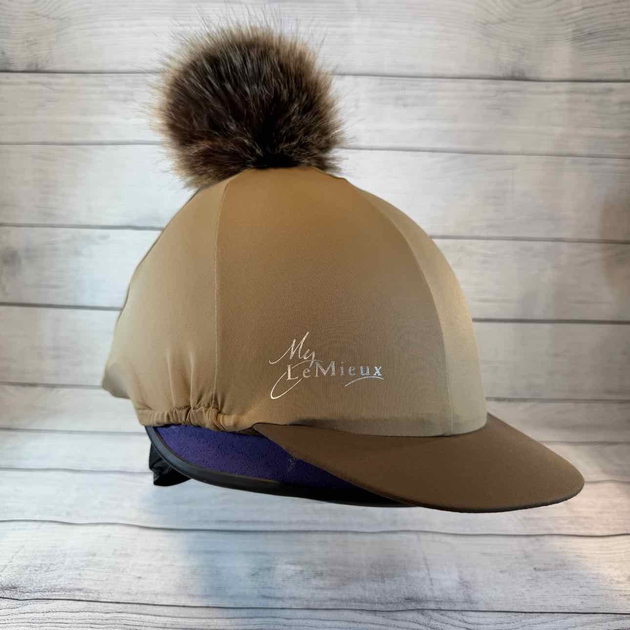 Pom Hat Silk. Brown with Brown Pom Pom. Lycra Skull Cap Cover.