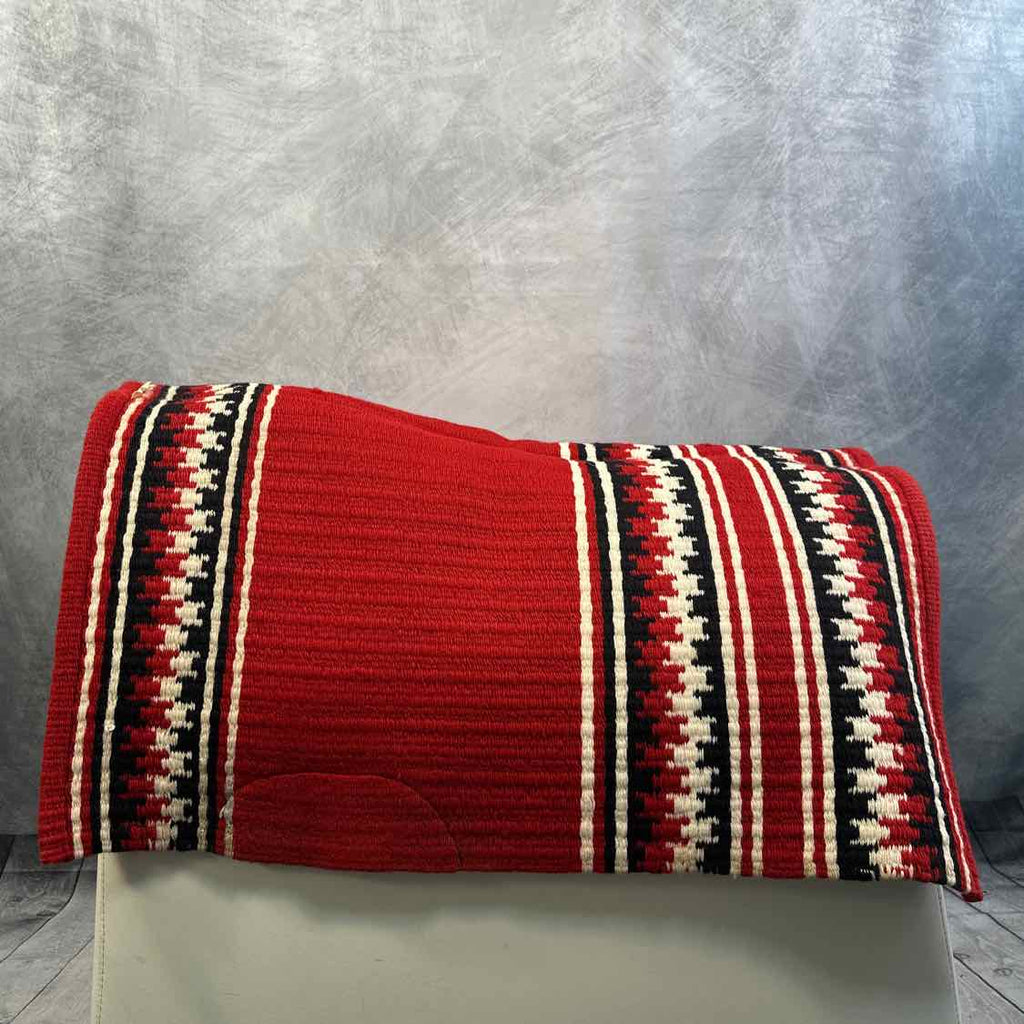 Western Wool High End Show Pad. Has Leather Billet Guards. Gently Used. 34" x 38". Red with Black and White Pattern.