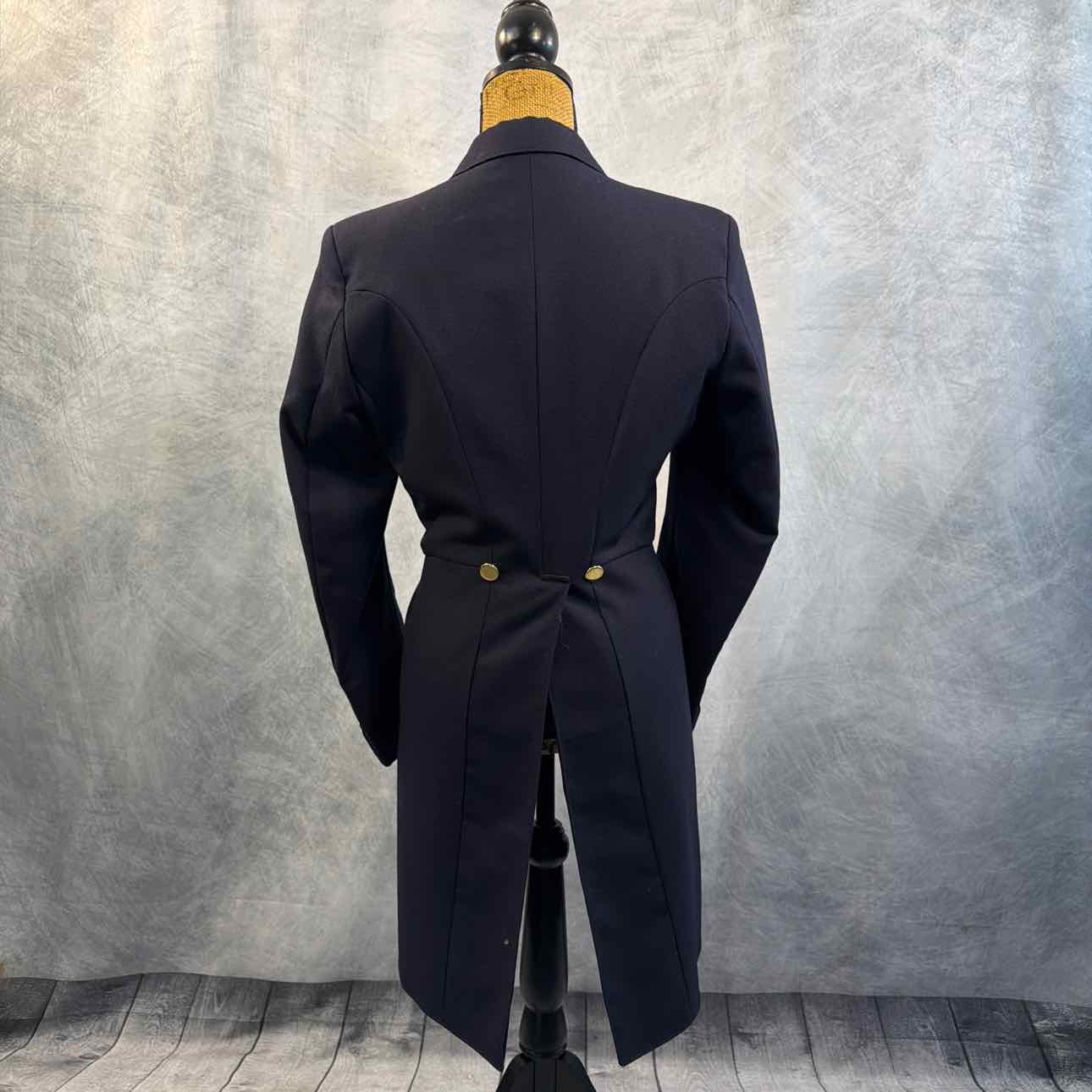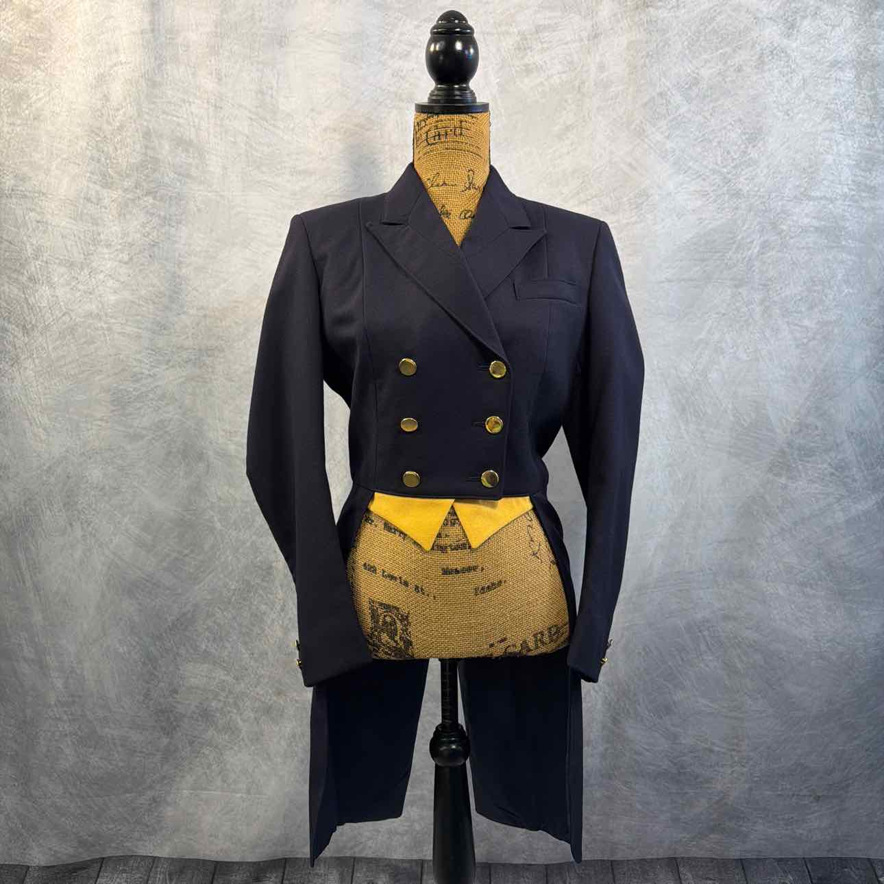 Wool Shadbelly with Gold Buttons and Yellow Points. Small Moth Hole on Back Left Tail. See Detail Photo. Final Markdown Price!