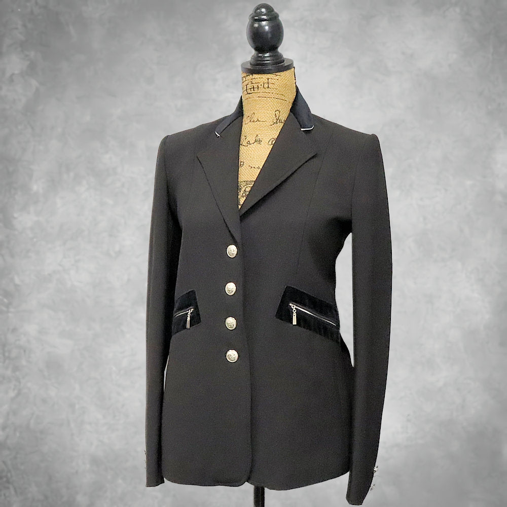 Lightweight Dressage Show Jacket. UK 12. Mesh lining. Velvet Collar and Accents.