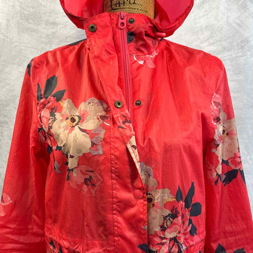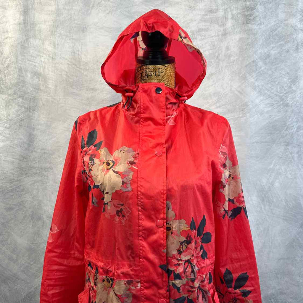 Rain Jacket with Flowers. Right as Rain Collection. Front Zip with Snap Cover. Hood with Elastic Ties. Final Markdown Price!