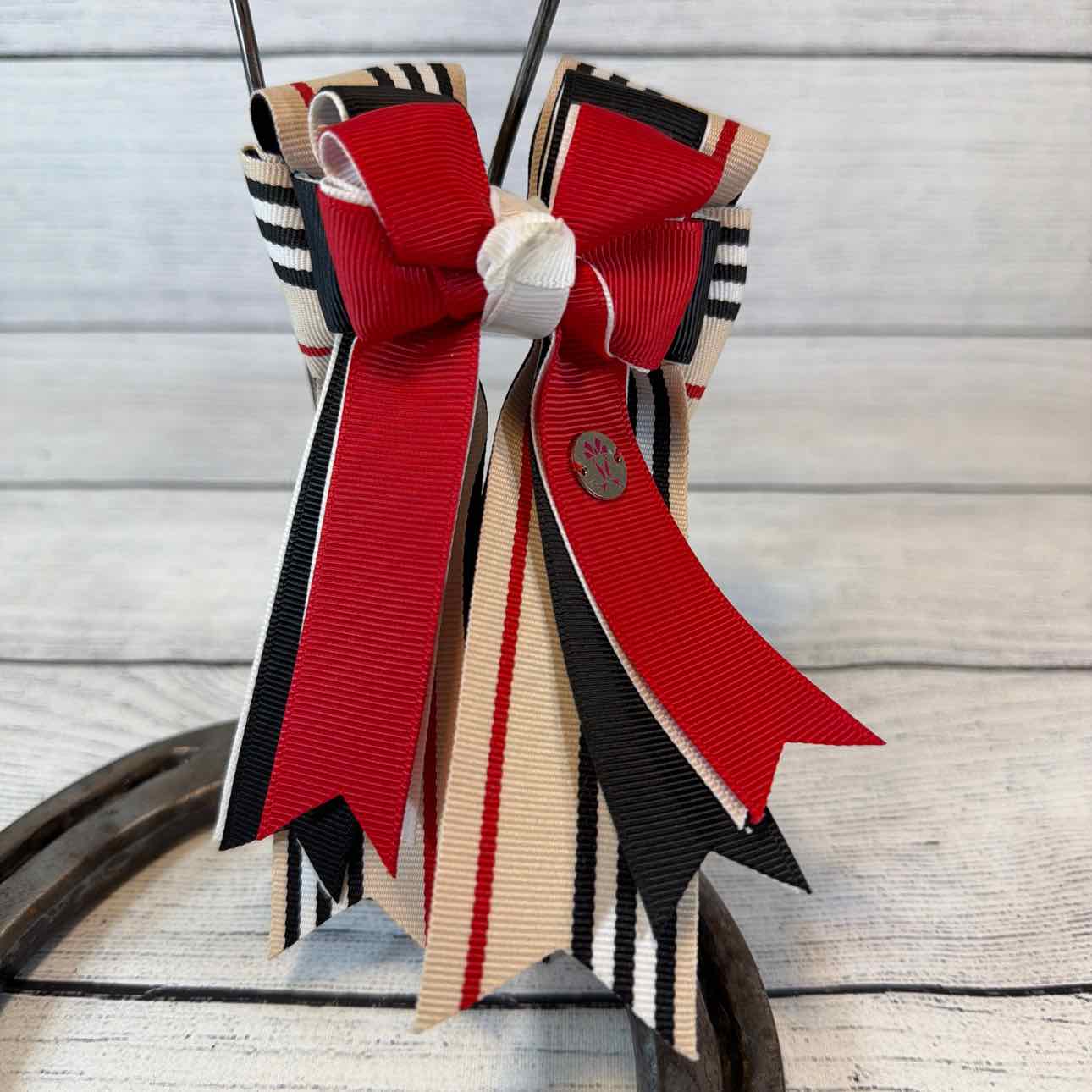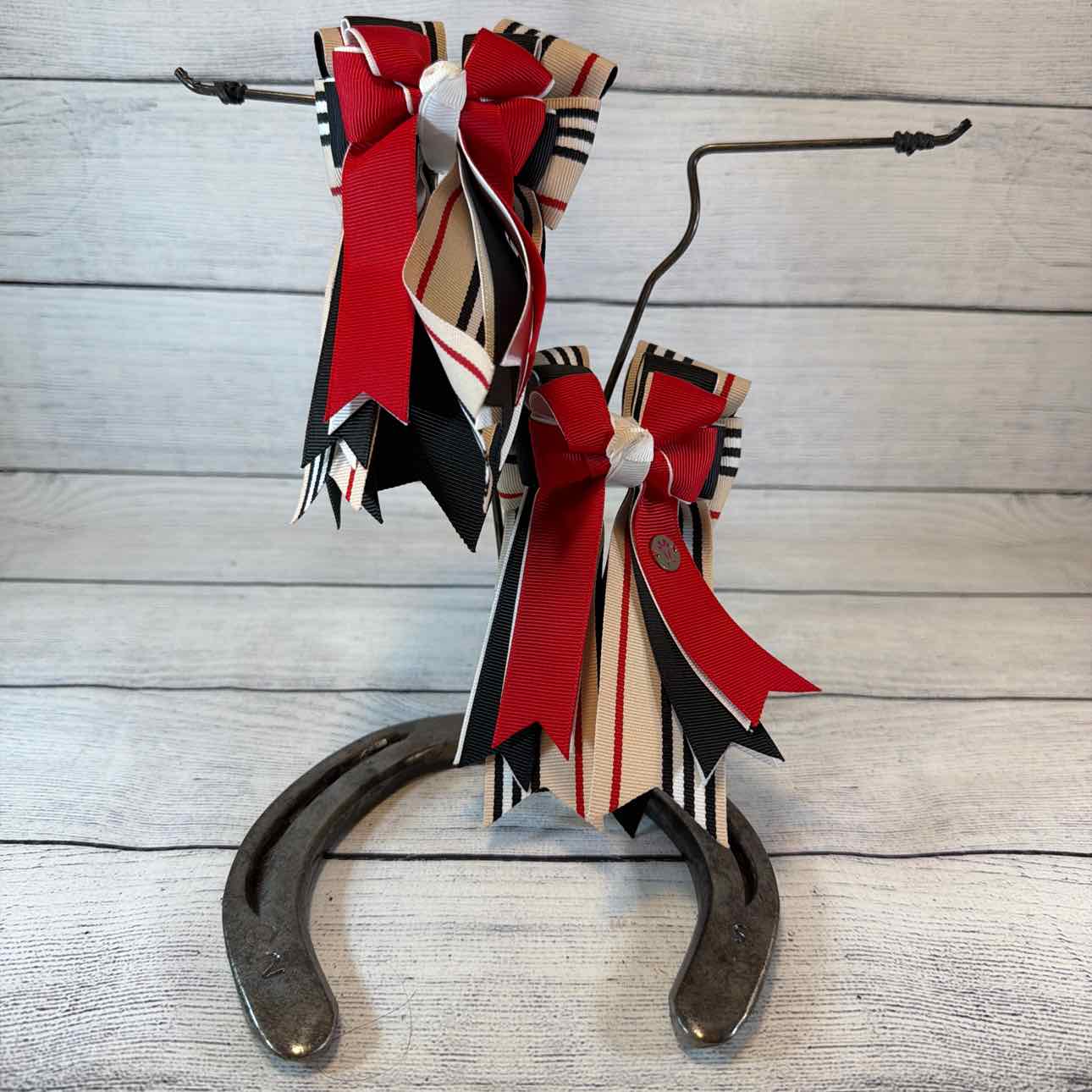 Triple-Layer Show Bows. PAIR. Beige Plaid, Navy and Red. Attached to a Sturdy French Barrette. Perfect for Shows or Fun for Everyday Wear. Like New Condition.