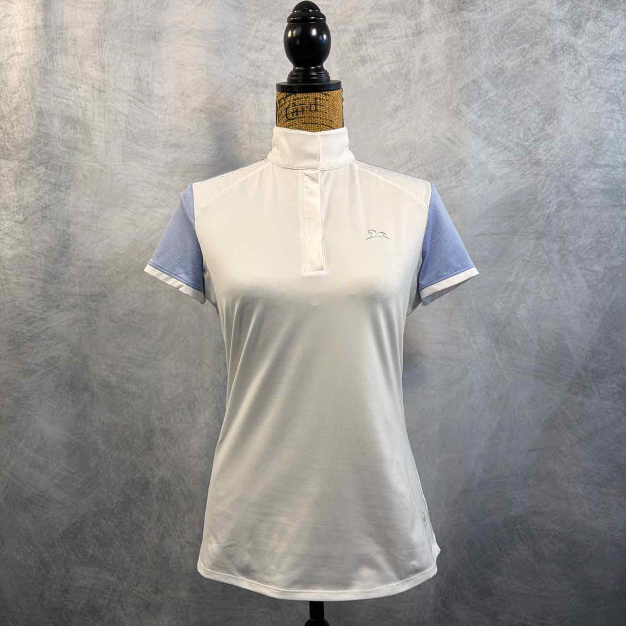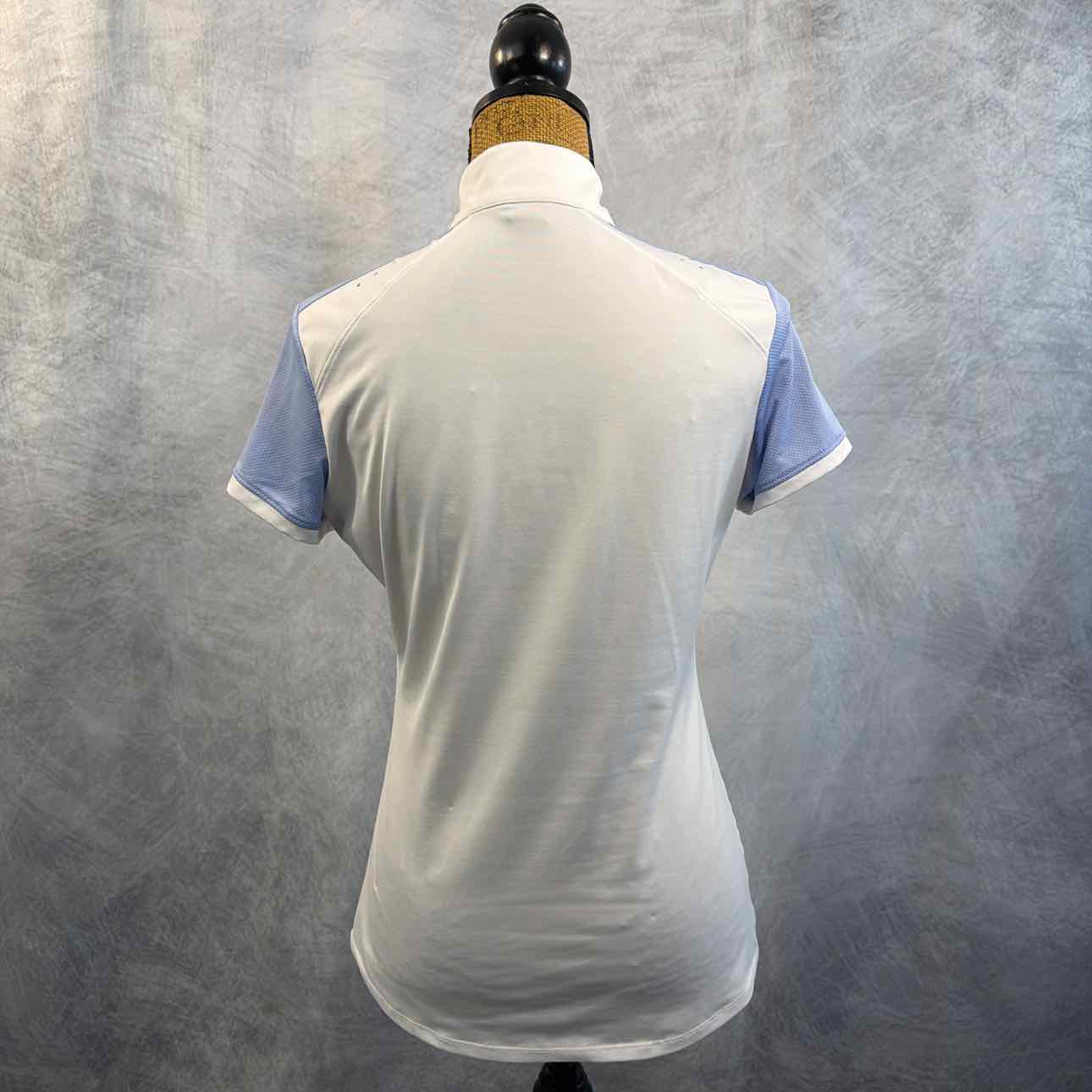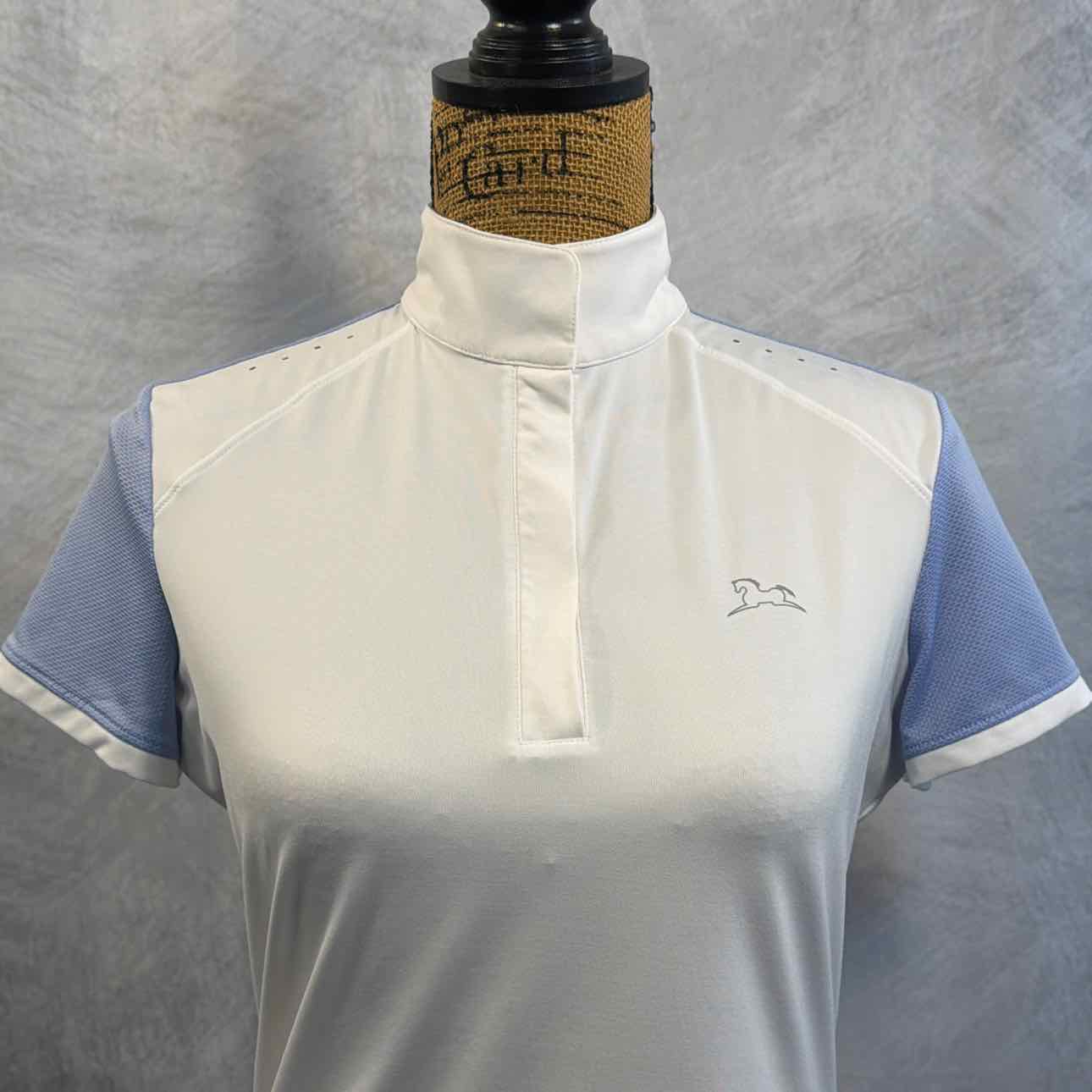 Short Sleeve Show Shirt and PonyTail Bows Set. Shirt has Light Blue Mesh on Shoulders and Sleeves. Bows are Pink, Light blue with Rainbow Horse Pattern. Very Good Condition. Shirt is Woman's Size, not Youth.
