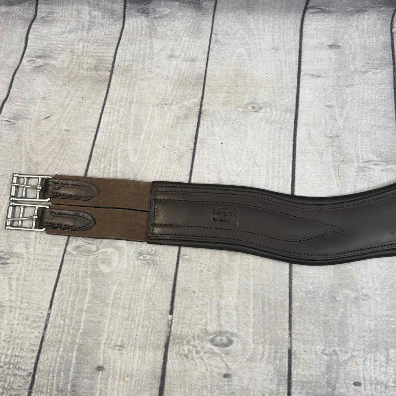 Soft Leather Logic Jump Girth. Contoured. Excellent Condition. Elastic on Both Ends. Center D Ring. Stainless Steel Hardware.
