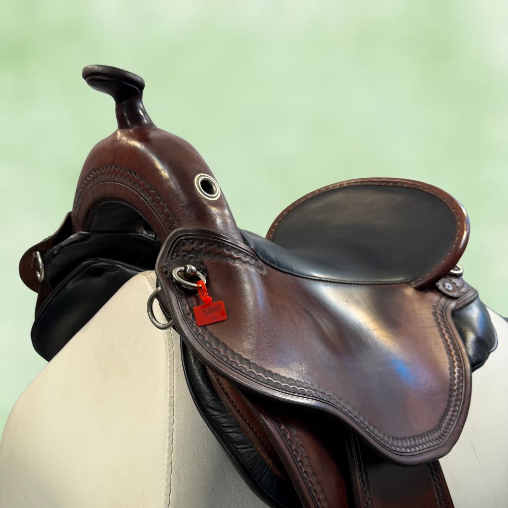 Quantum Short & Light Western Saddle. Fully Adjustable Tree with Key. Has Key. No Cover. English Billet Rigging. Used. Consigned.
