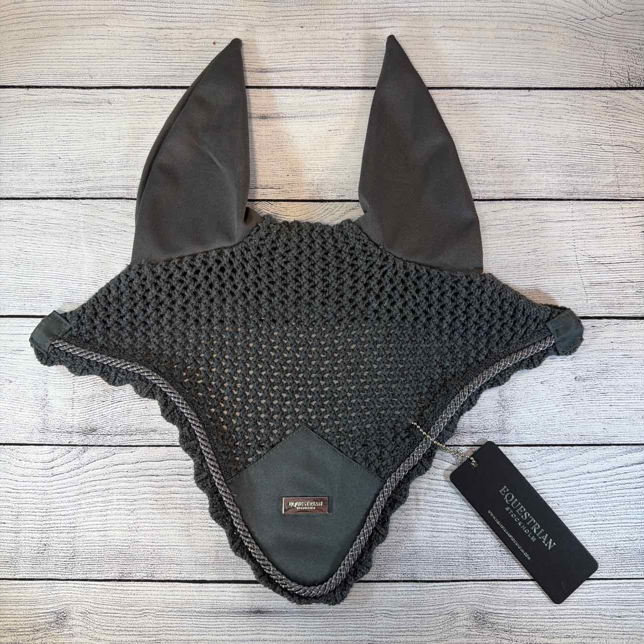 New No Bounderies Silver Cloud. Crochet Ear Bonnet. Grey & Silver Corded Trim.