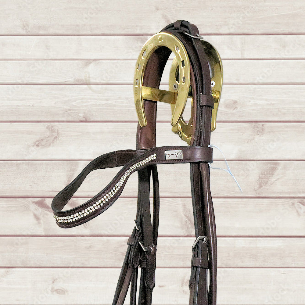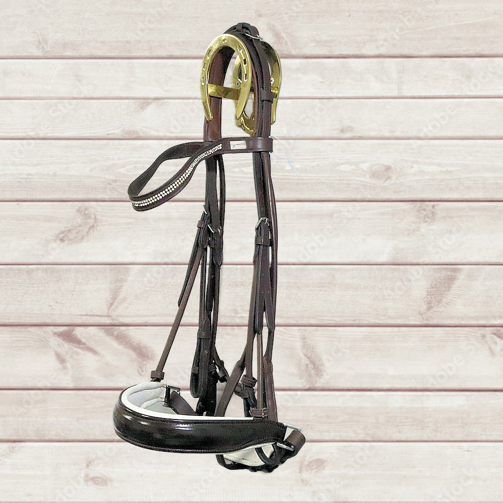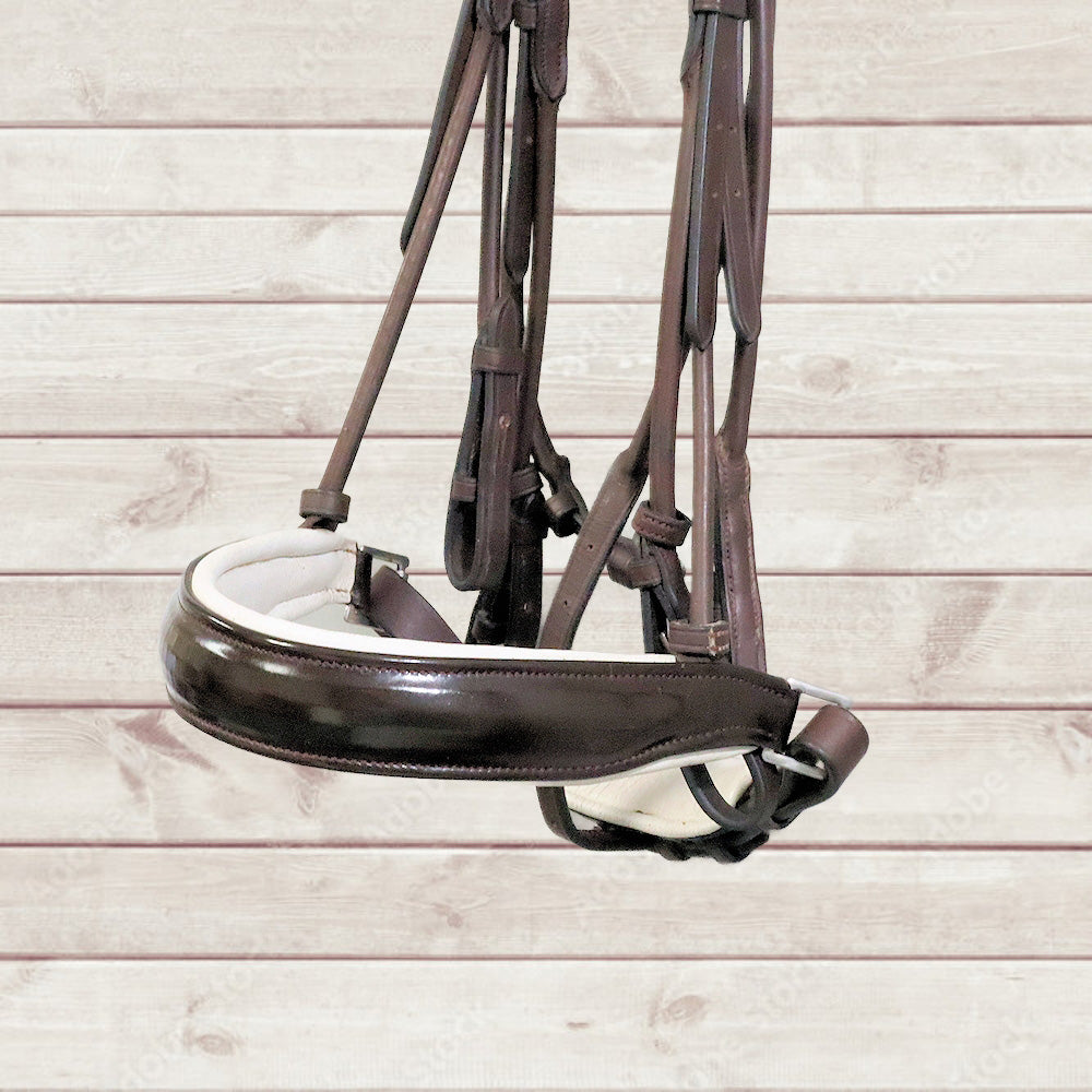 Double Bridle Rolled with Patent Noseband, White Padding, Bling Browband. Headstall Only. Can be adjusted to a single bridle. No reins. A few crystals missing out of browband.