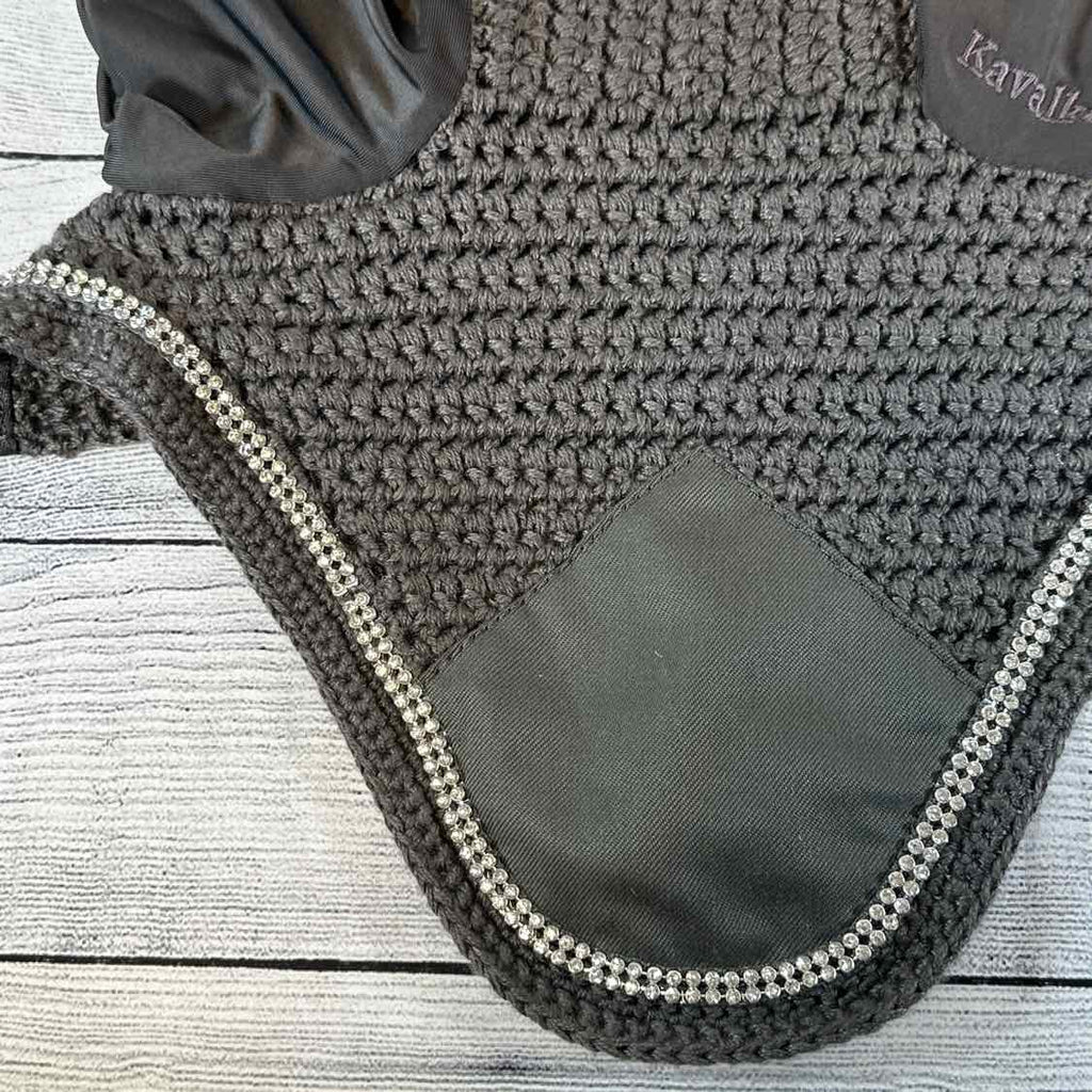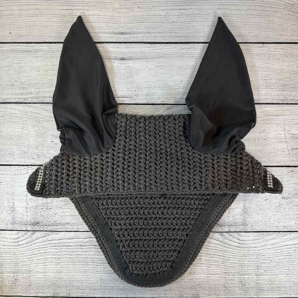 Crochet Ear Bonnet with Bling Crystal Trim. Soft Ears. Great Condition.
