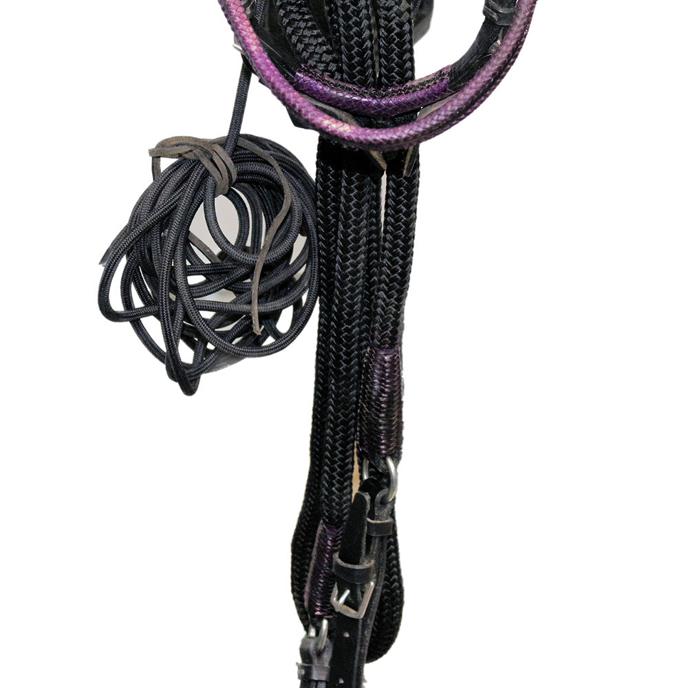 Jaquima Paso Fino Show Bridle. Black and Purple.