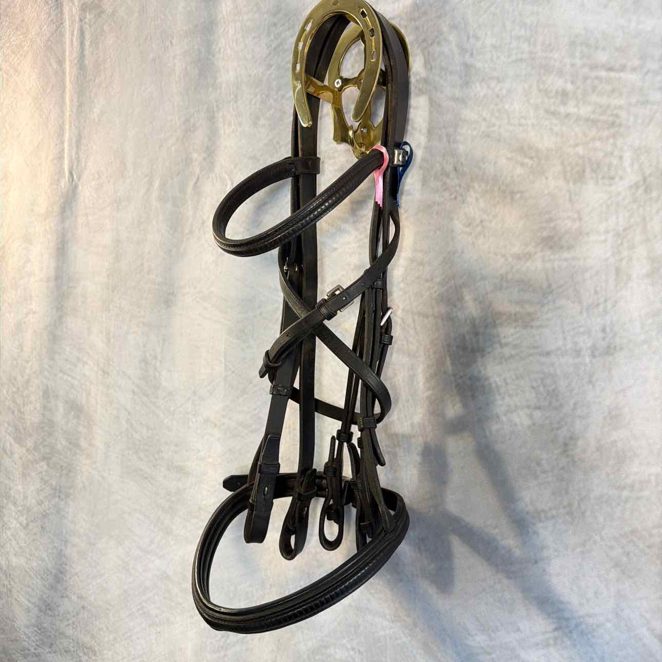 Raised Double Bridle. Used, but Good Condition for Schooling Bridle. Headstall Only - No Reins. Bit Hangers have Hook Stud Ends.