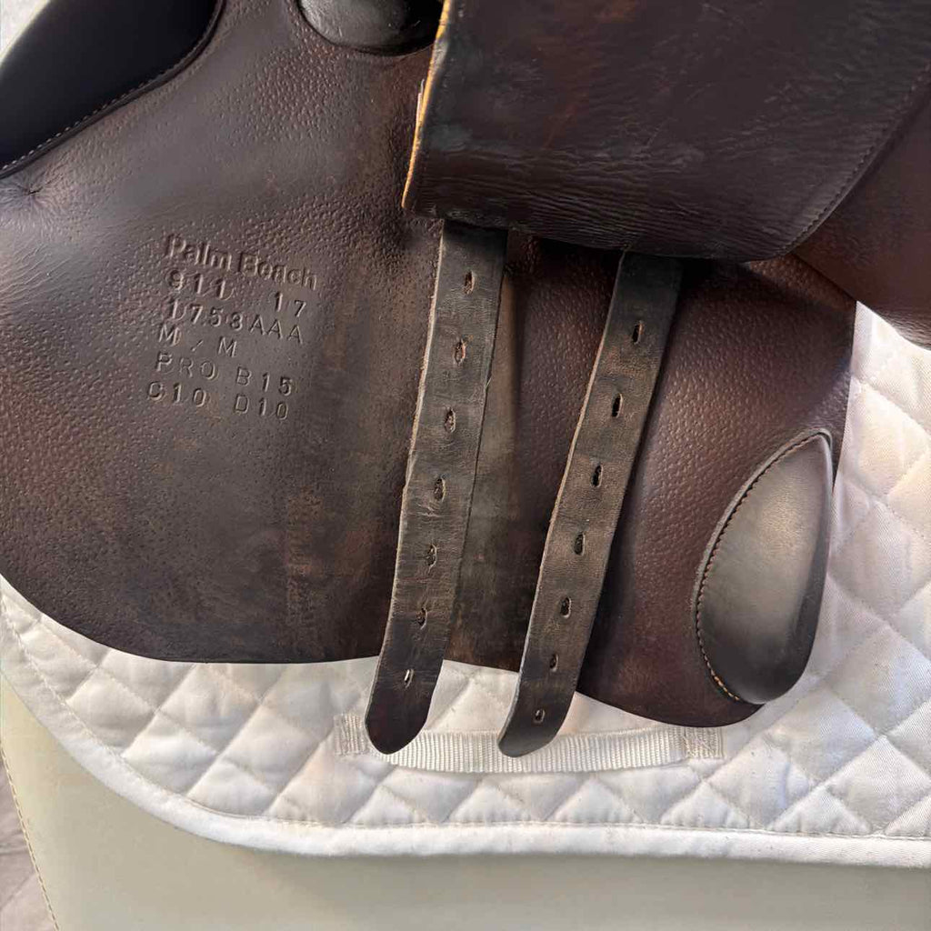 Palm Beach Close Contact Saddle. M/MW (measures 5"). Flap 13". 2017. Has Cover. TAB in Panel PRO BB15 D10. Was Pro B15 C10 D10. Very Good Condition.