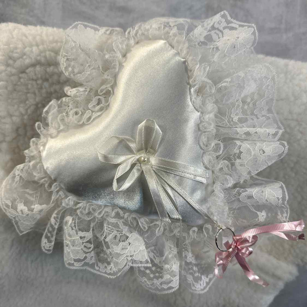 Contour Saddle Pad with Pink Ribbon Edges and Heart Ring Pillow. The Perfect Accessory for Incorporating Your Horse into a Wedding Ceremony. Final Markdown Price!