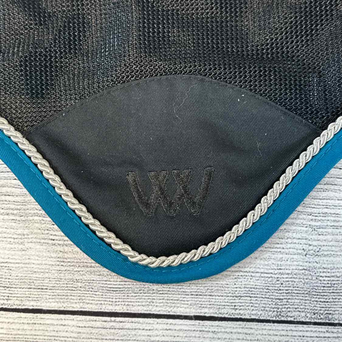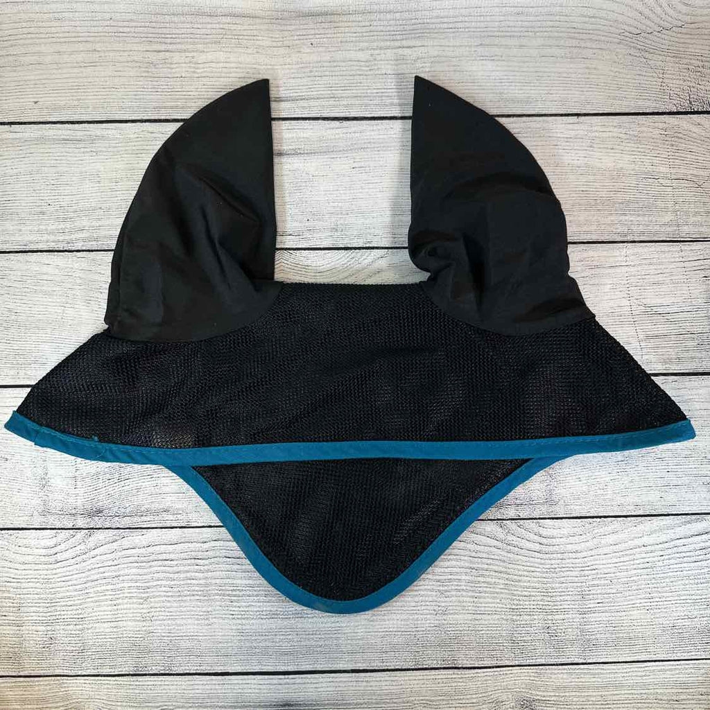 Ergonomic Mesh Ear Bonnet with Turquoise Trim and Silver Rope Braid. Lycra Ears. Very Good Condition.