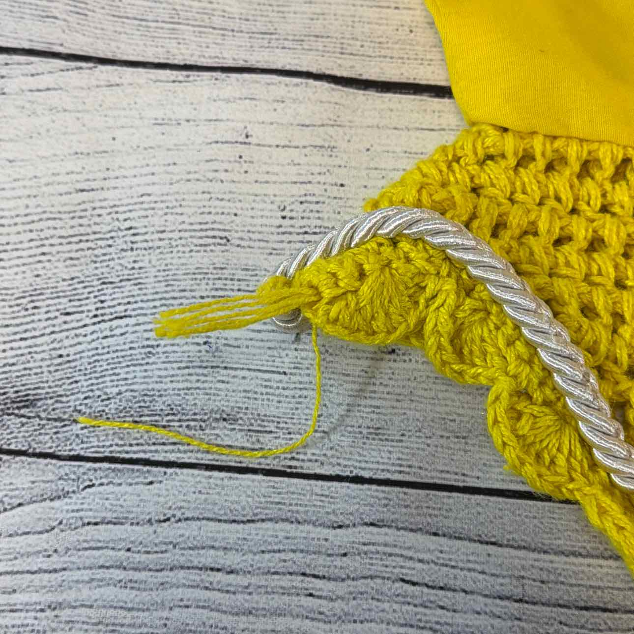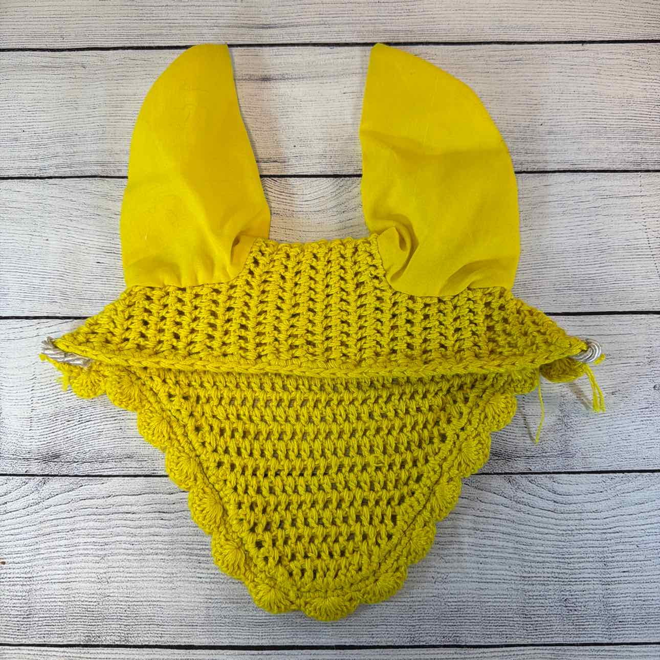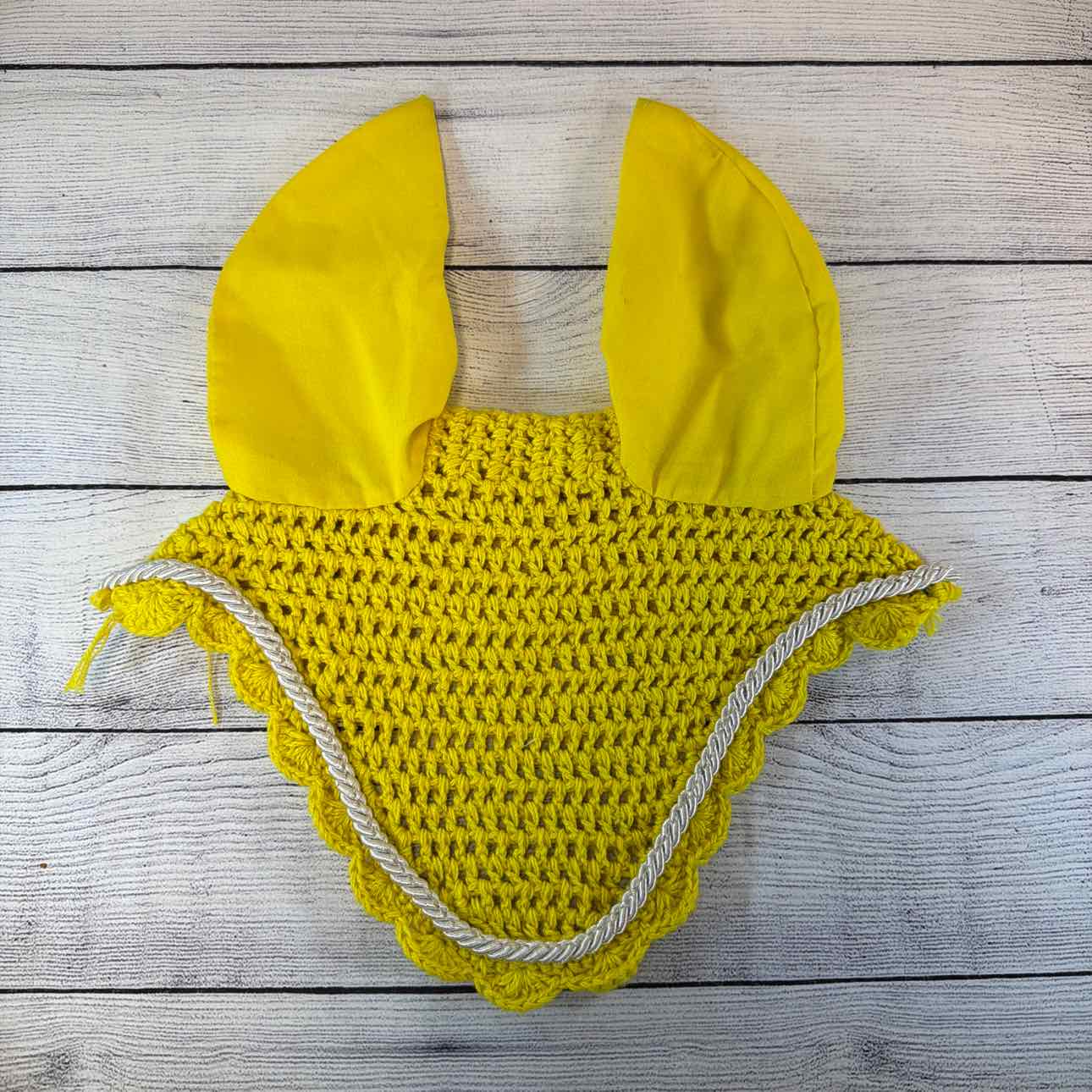Crochet Ear Bonnet. Large Pony Size. Some Threads on Right Side - Maybe Where Throat Cord Was Cut?